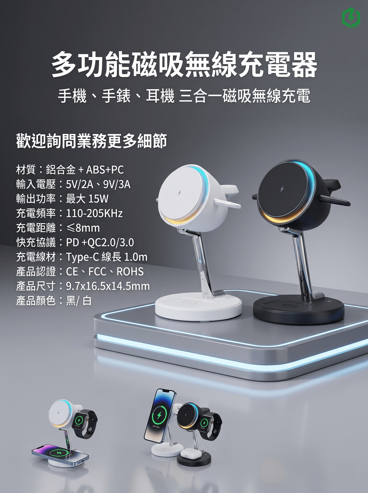 多功能磁吸無線充電器